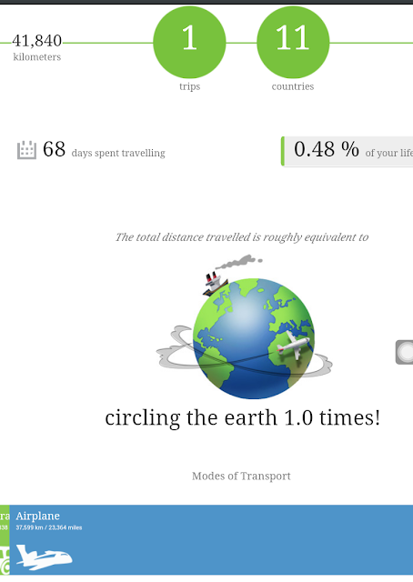 Não, ainda não demos uma volta ao mundo propriamente dita. Mas a distância que já percorremos até 27 de fevereiro de 2013 é o equivalente a uma circunavegação da terra pelo equador: 41.840 km, contando do dia que saímos de Brasília para Belo Horizonte.