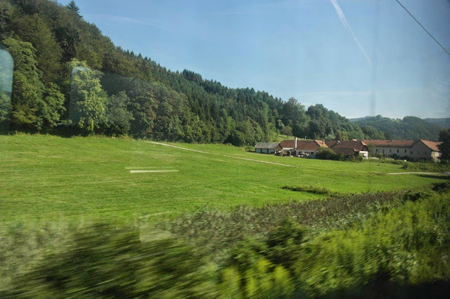 Saímos às 12:35 e chegamos às 15:10: apenas 5 minutos de atraso. Trem bem vazio. Só um rapaz chatíssimo escutando músicas chatíssimas na maior altura e incomodando todo o vagão. E todo mundo do vagão pediu para ele desligar, usar fone ou diminuir. Mas só no meio da viagem, depois da quinta tentativa, é que ele desligou. Acho que foi mais porque foi nessa hora a polícia da Eslovênia entrou no trem.