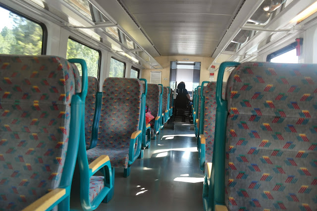 | Perto do final o trem já estava bem vazio. São várias paradas pelo caminho. A perder a conta. |