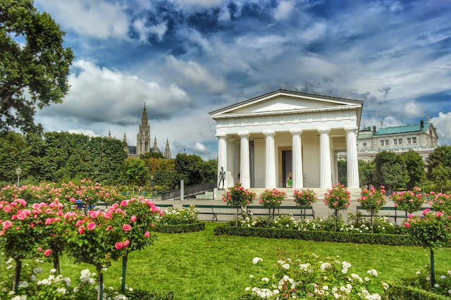 O Volksgarten. Todo florido com milhares de rosas. E dele se tem uma vista privilegiada tanto da prefeitura como do parlamento.